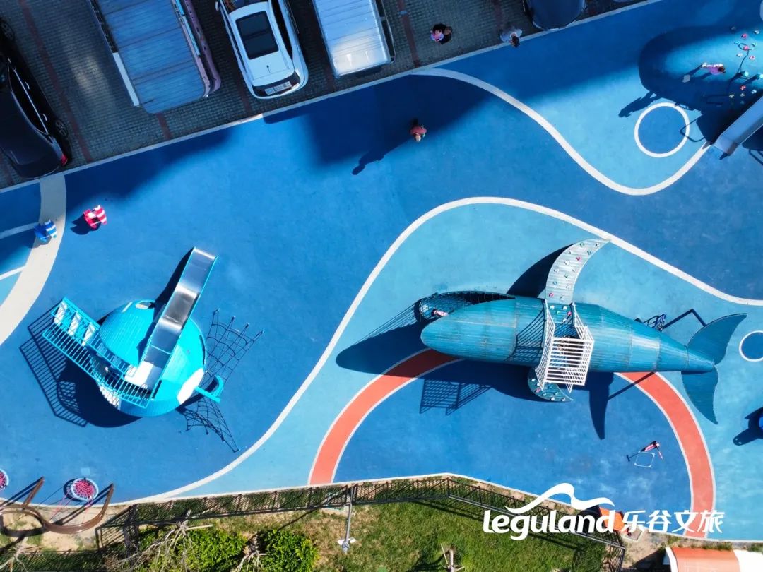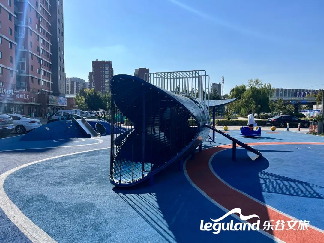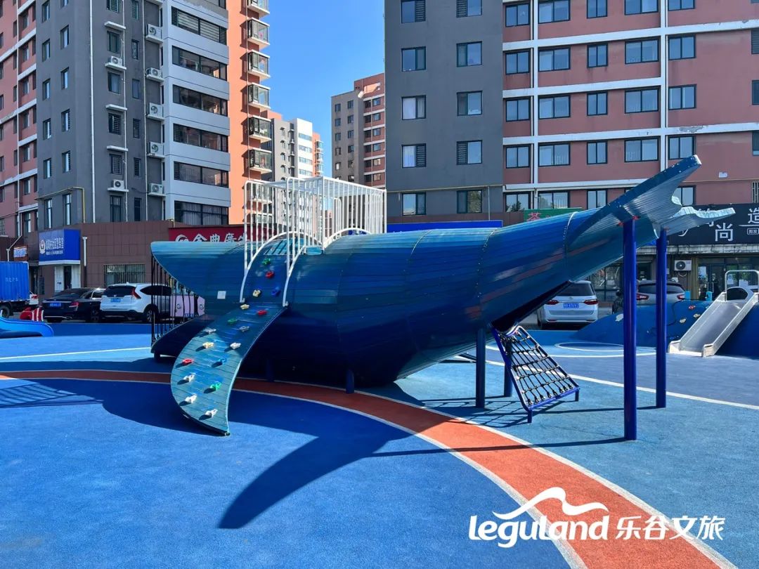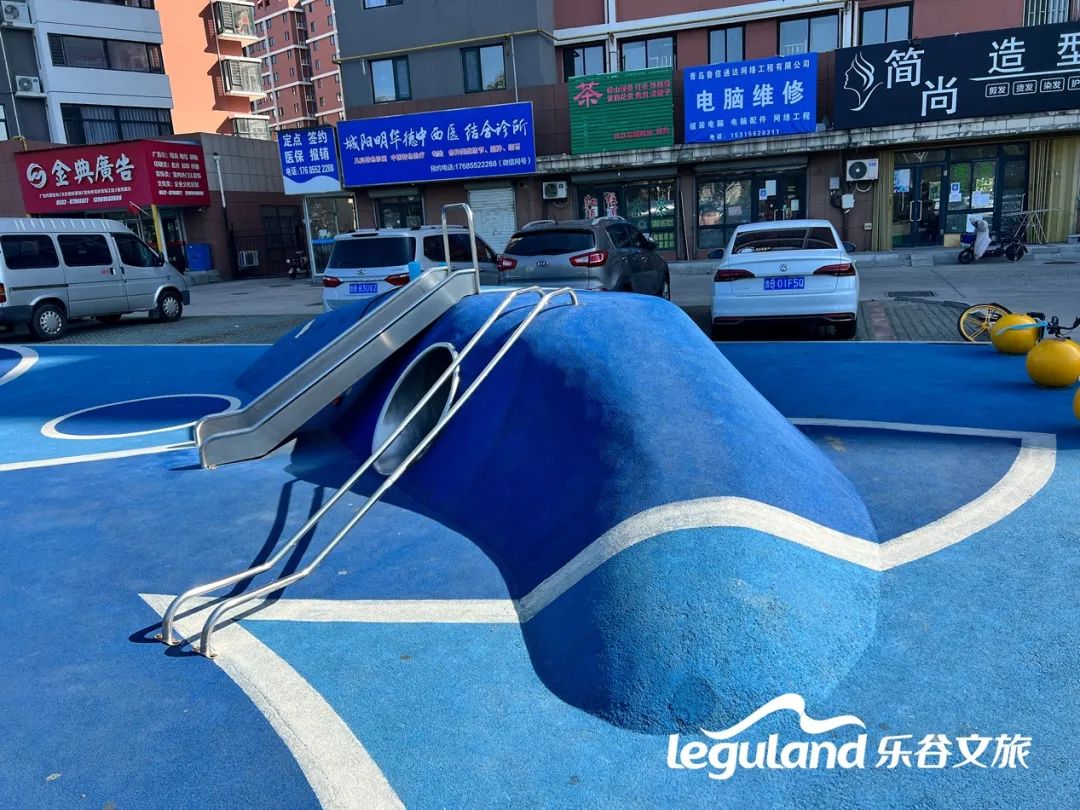 城阳南瞳河滨水河道一侧有一个鲸奇乐园