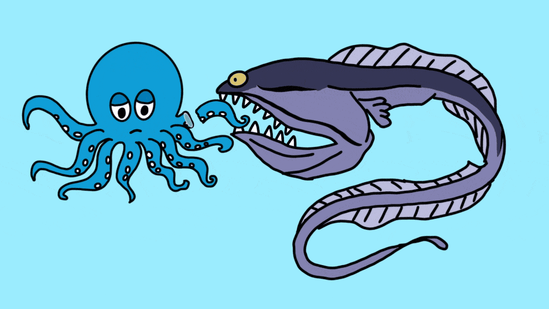 原来章鱼的触须是被凶猛的海鳗咬掉的。