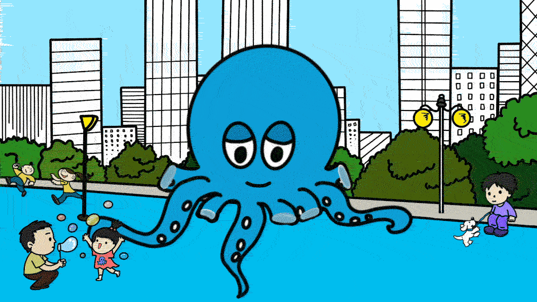 作为一只受伤的章鱼,被樾府的小朋友收留后化身为小区内的章鱼乐园。孩子们可以在里面进行各种娱乐。