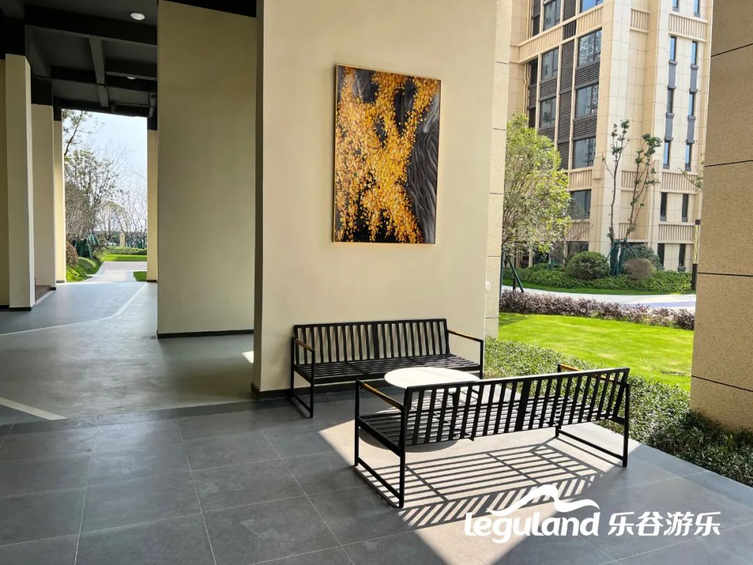 北侧架空层休闲区,可以称之为年轻人约会圣地,光影照射之下,让整个架空层充满了优雅地感觉,设计师可谓诚意满满!