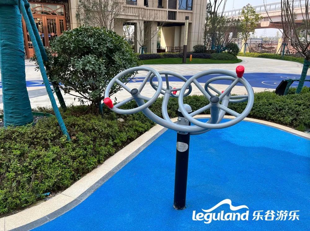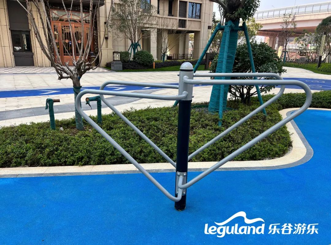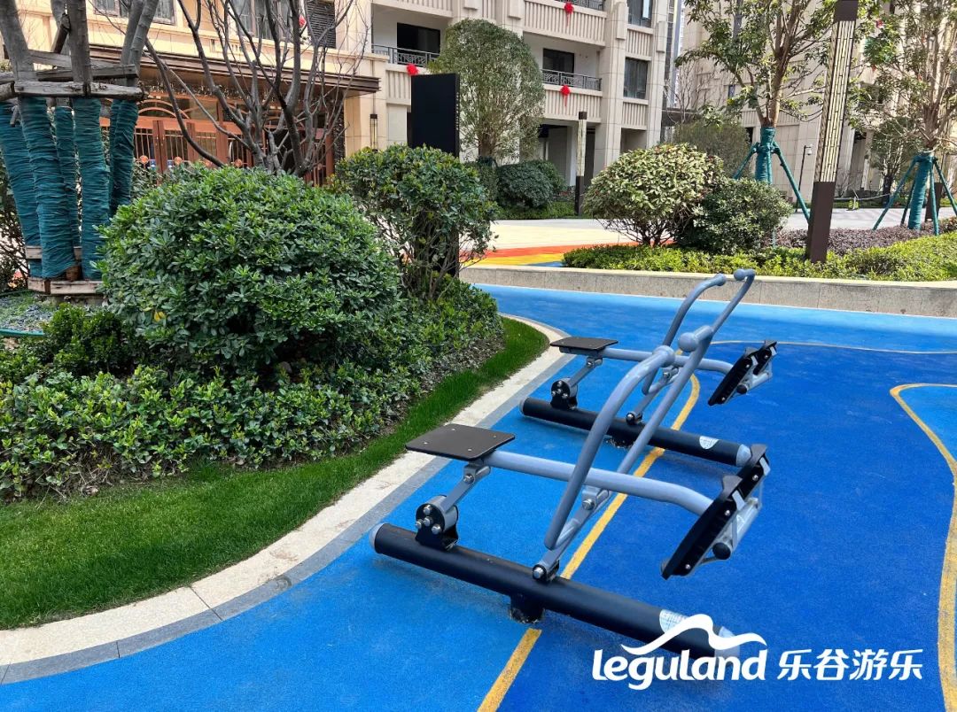散落在周边的健身器材,可以满足陪孩子游玩的成年人健身休闲。