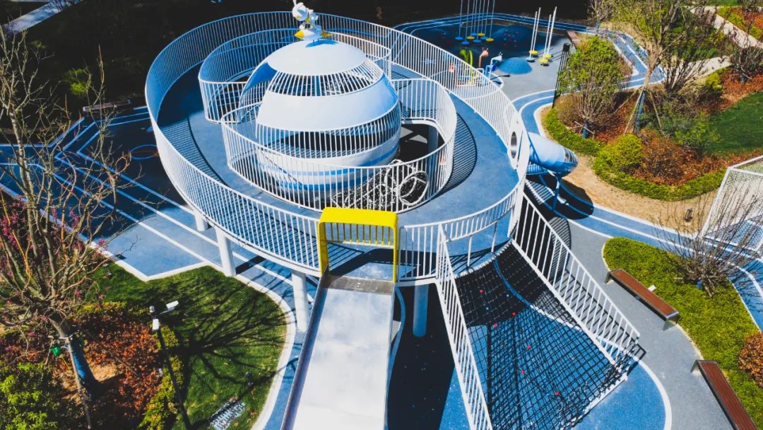 乐园的设计灵感来源于宇宙的奥秘,孩子们可以在这里探索星球的秘密,感受宇宙的神秘与美丽。乐园内的游乐设施,如滑梯组合、攀爬网、大型滑梯等,让孩子们可以自由地攀爬、跳跃、滑行,享受刺激与快乐。同时,周边散落的设备,如户外攀爬网、冒险行走装置、多人传声筒、摇摇椅、复古水井、儿童篮球场、轮滑园等,可以满足孩子们多种活动的需求,让他们在玩乐中锻炼身体,增强体质。