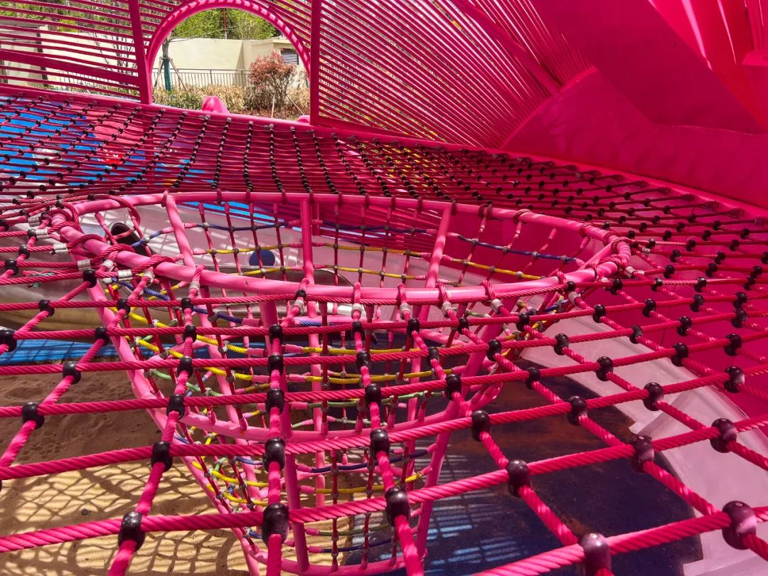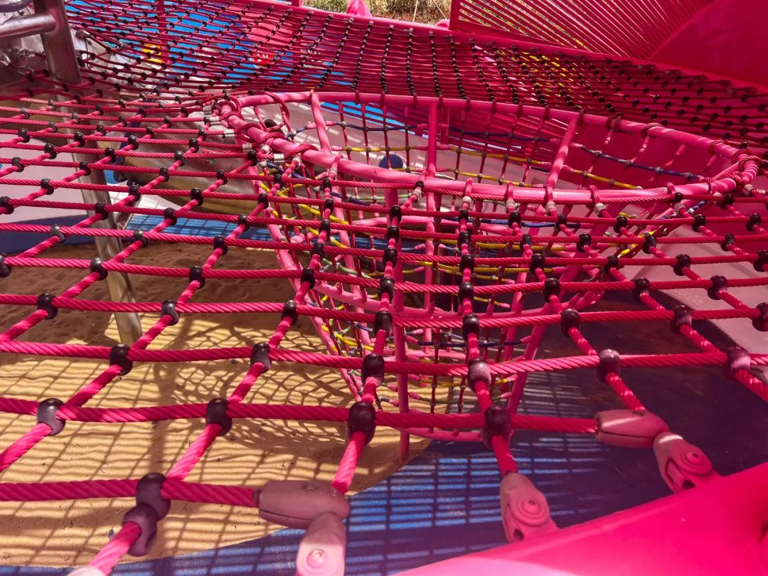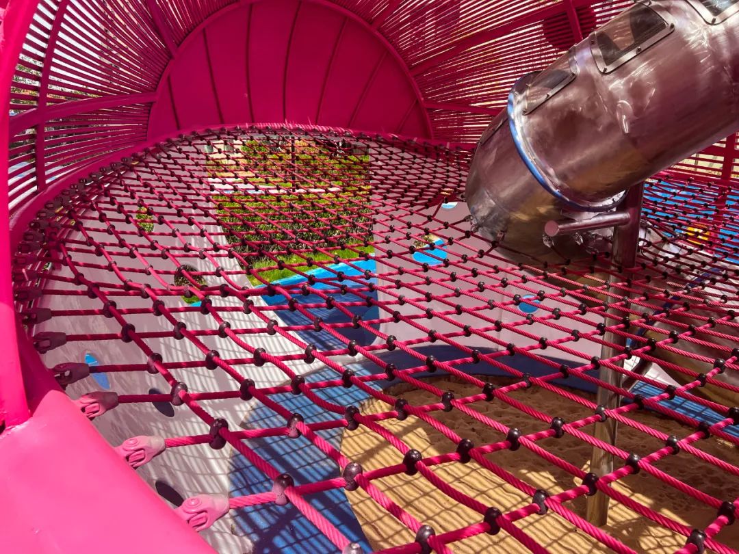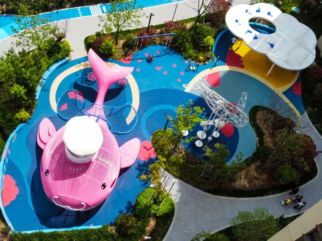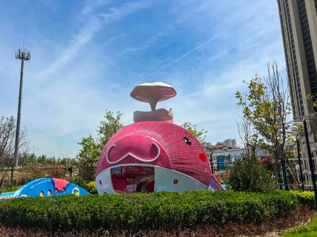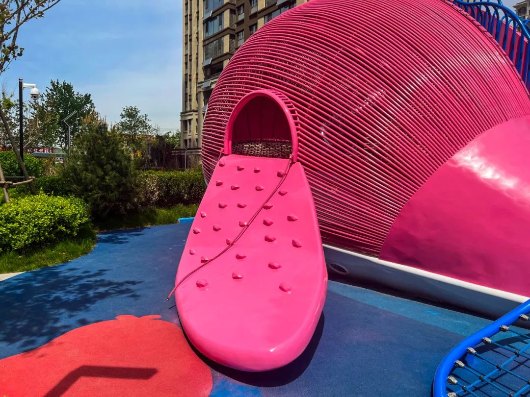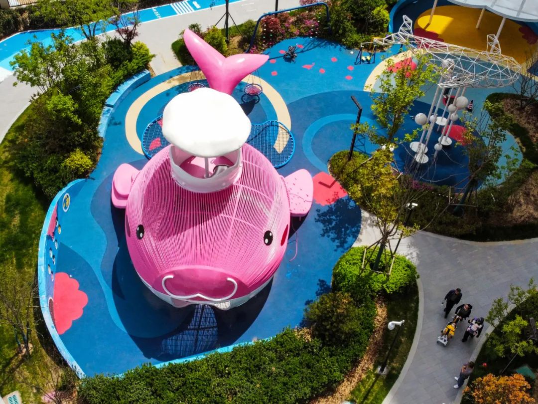 首先,我们为孩子们设计了两个秋千和一个大型爬网分别安装在了粉色鲸鱼的尾鳍和背鳍。这些设施不仅能够满足孩子们的攀爬需求,还能提供足够的空间让他们在秋千上享受荡漾的快乐。