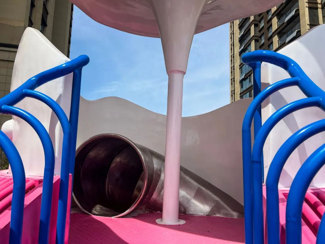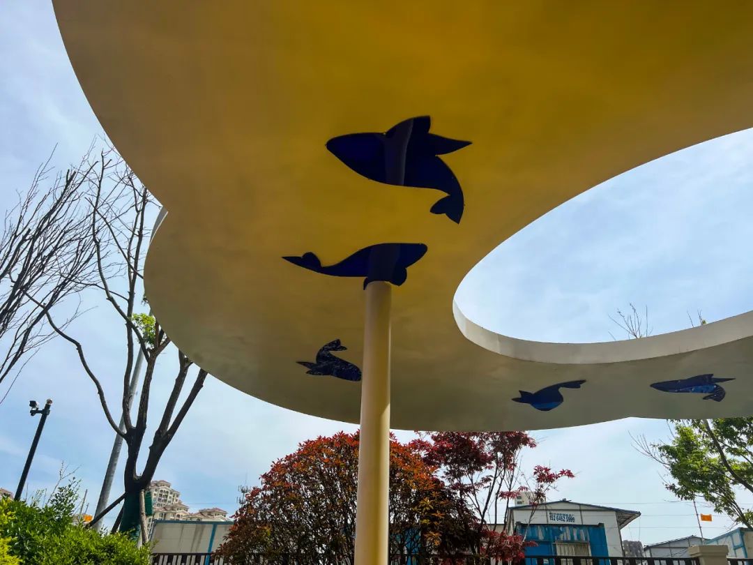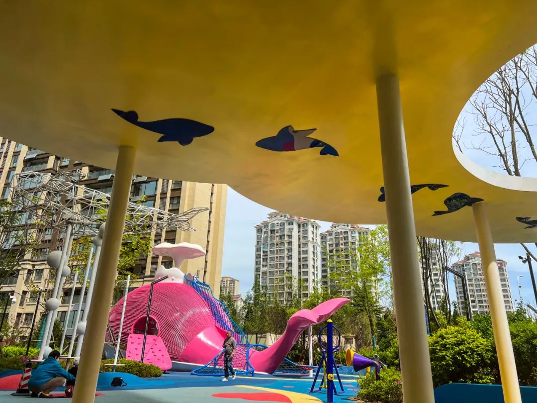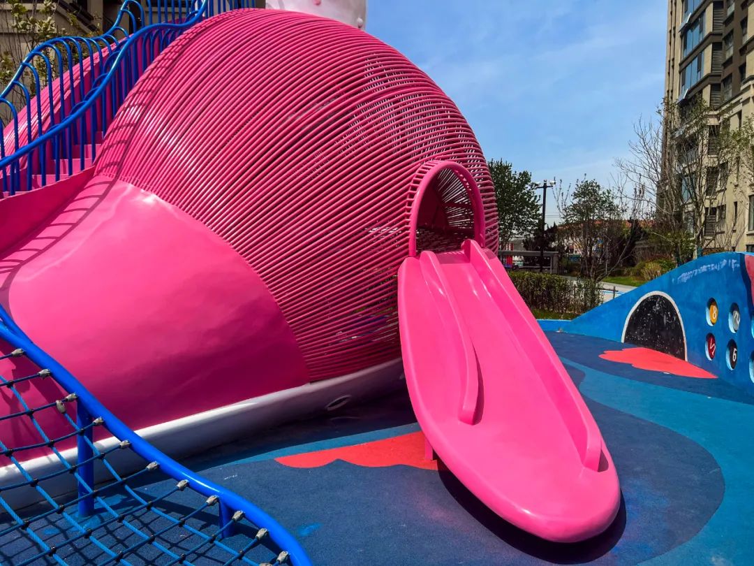 此外,左侧胸鳍制作成了攀爬墙,右侧胸鳍则被设计成了滑梯。孩子们可以在攀爬墙上挑战自己的身体极限,或者在滑梯上轻松愉悦地玩耍。