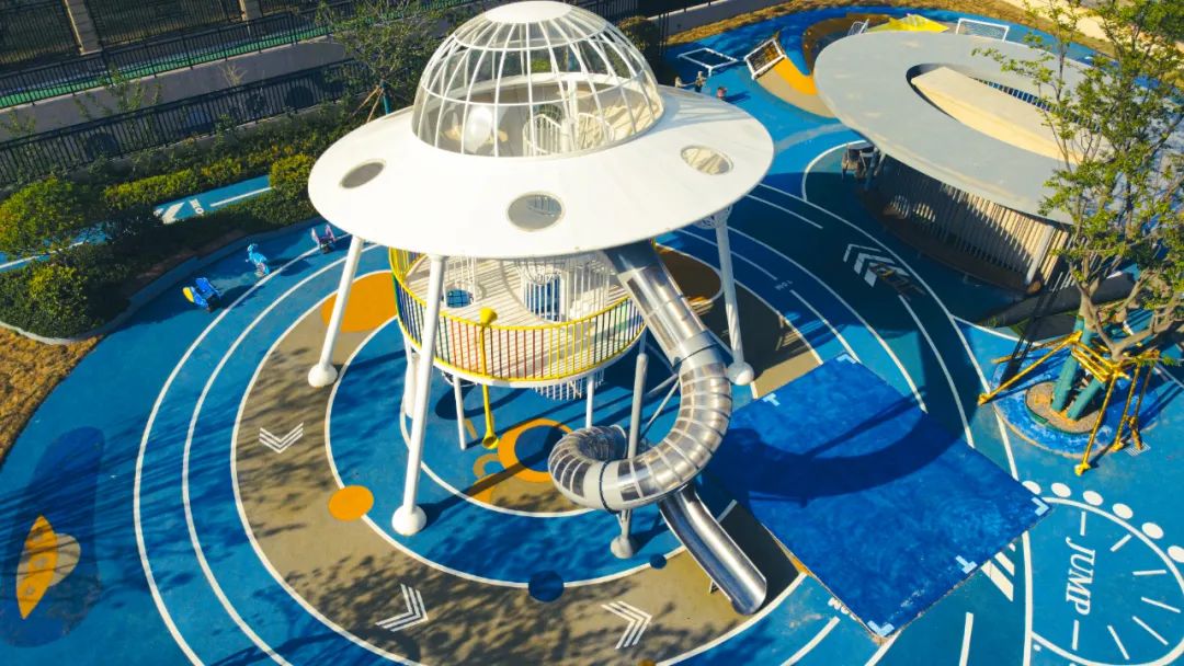 快来体验太空飞碟吧,让我们一起征服这座悬浮在空中的滑梯!