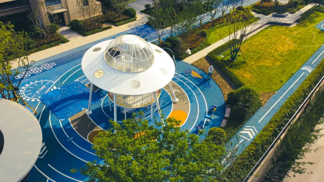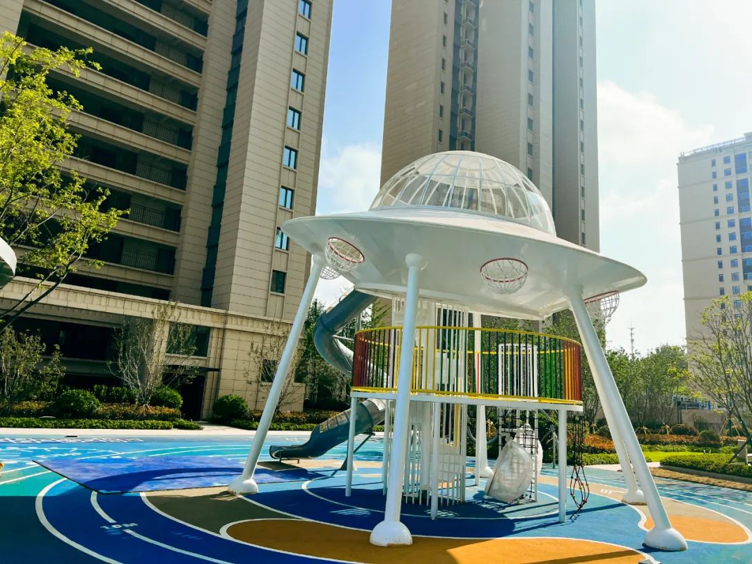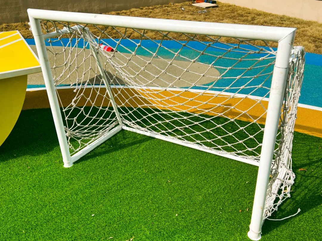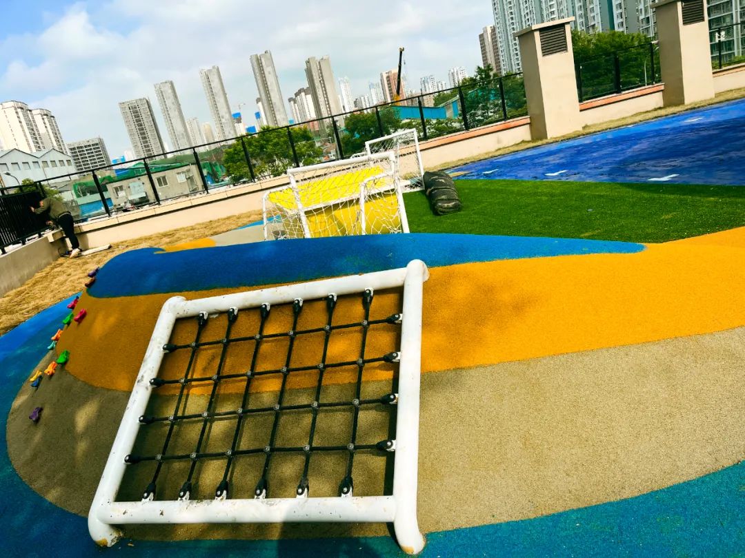 周边还有一个小型足球场,可以让孩子们在绿茵场上尽情奔跑,释放活力;