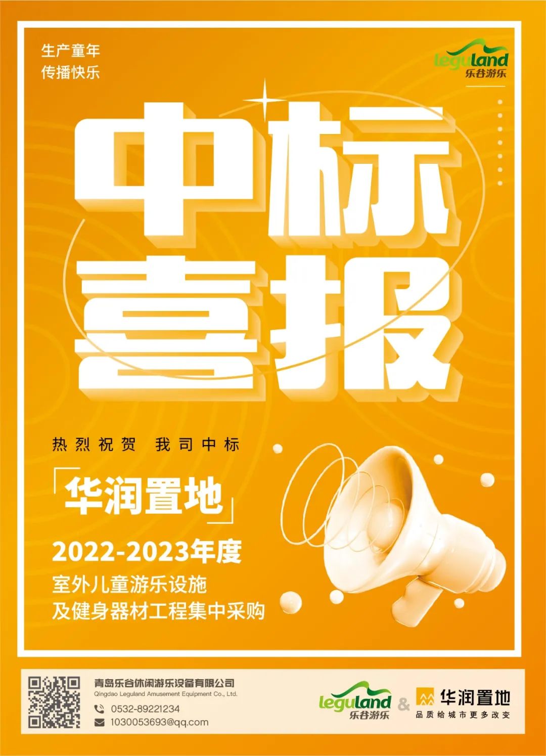 恭喜青岛乐谷休闲游乐设备有限公司中标华润置地青岛公司2022-2023 年度室外儿童游乐设施及健身器材集中采购工程!